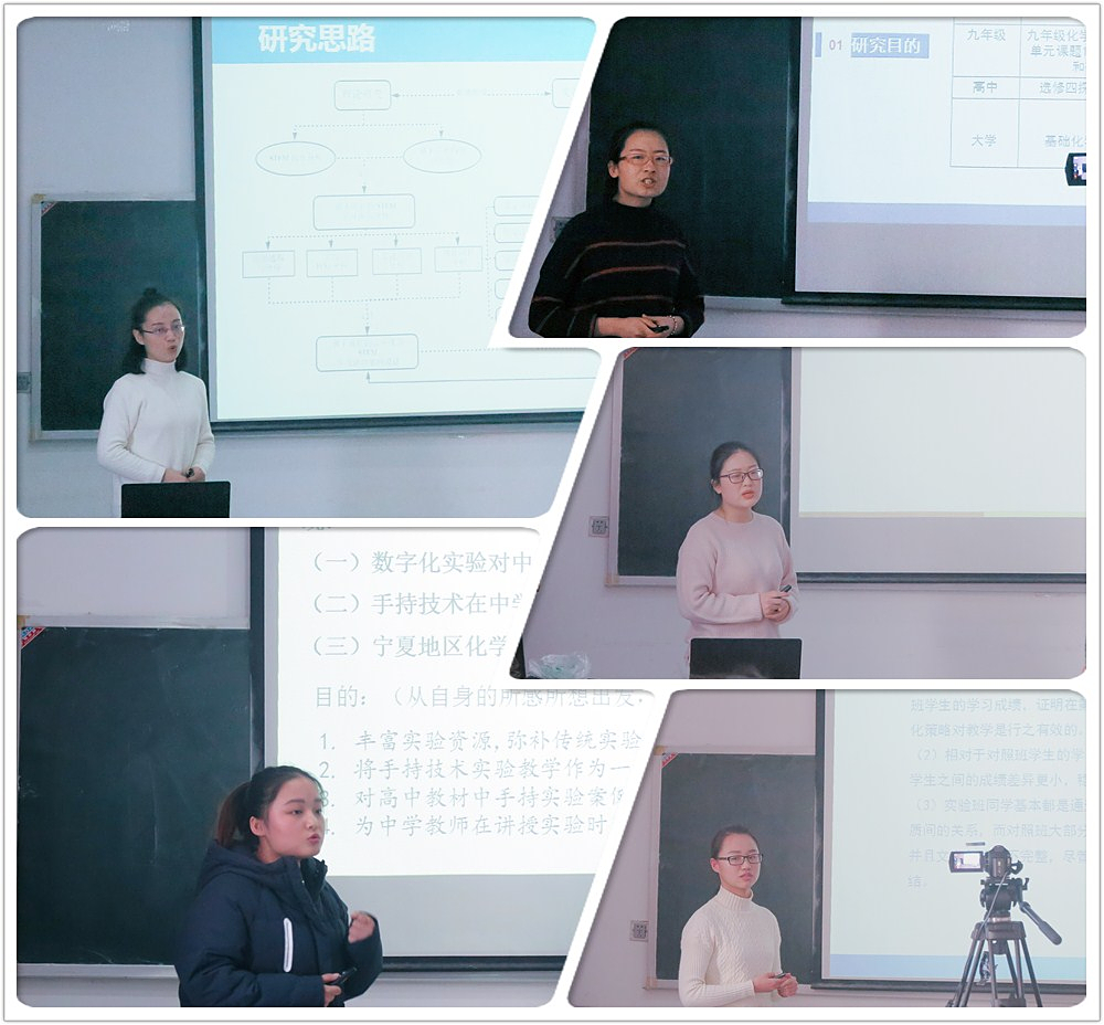 2016级研究生汇报完毕,各个老师进行了详细点评并对后期论文研究提出中肯的意见。认为五名研究生的研究内容都关注了中学教学改革的核心与热点问题,设计的案例操作性强,实践效果明显,对中学教学具有一定的实践意义和实用价值。老师们希望所有研究生扎实化学专业知识,在任何时候都要保持对教育事业的热情以及踏实勤恳的教学态度,唯有如此才能在众多优秀的青年教师中脱颖而出。